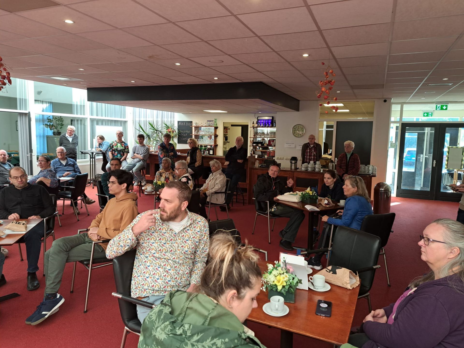 De deelnemers luisteren aandachtig naar het openingswoord van Jeroen Kramer