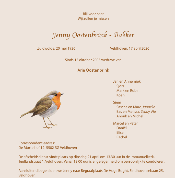 In memoriam Jenny Oostenbrink
