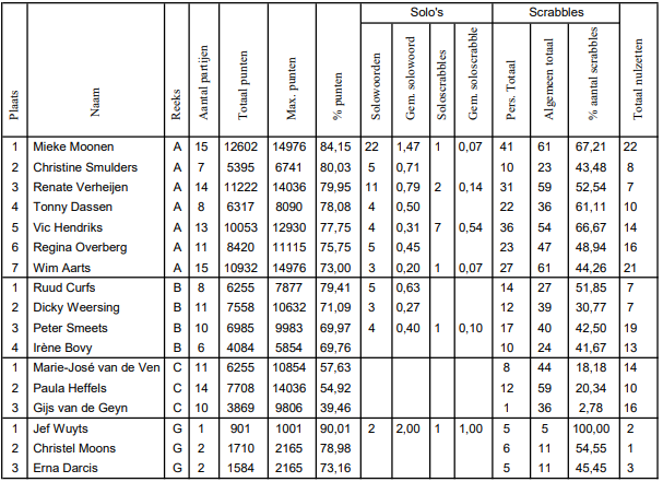 Hieronder zie je alle gespeelde wedstrijden van Scrabbleclub Swentibold van het seizoen 2025-2026.